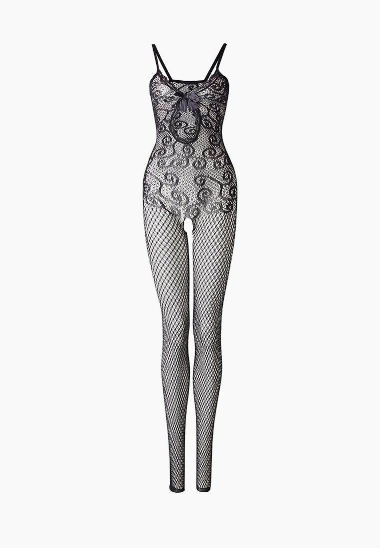 Чёрный комбинезон на тонких бретелях с узором-завитками в верхней части. С интимным доступом. Трусики и перчатки не входят в комплект!