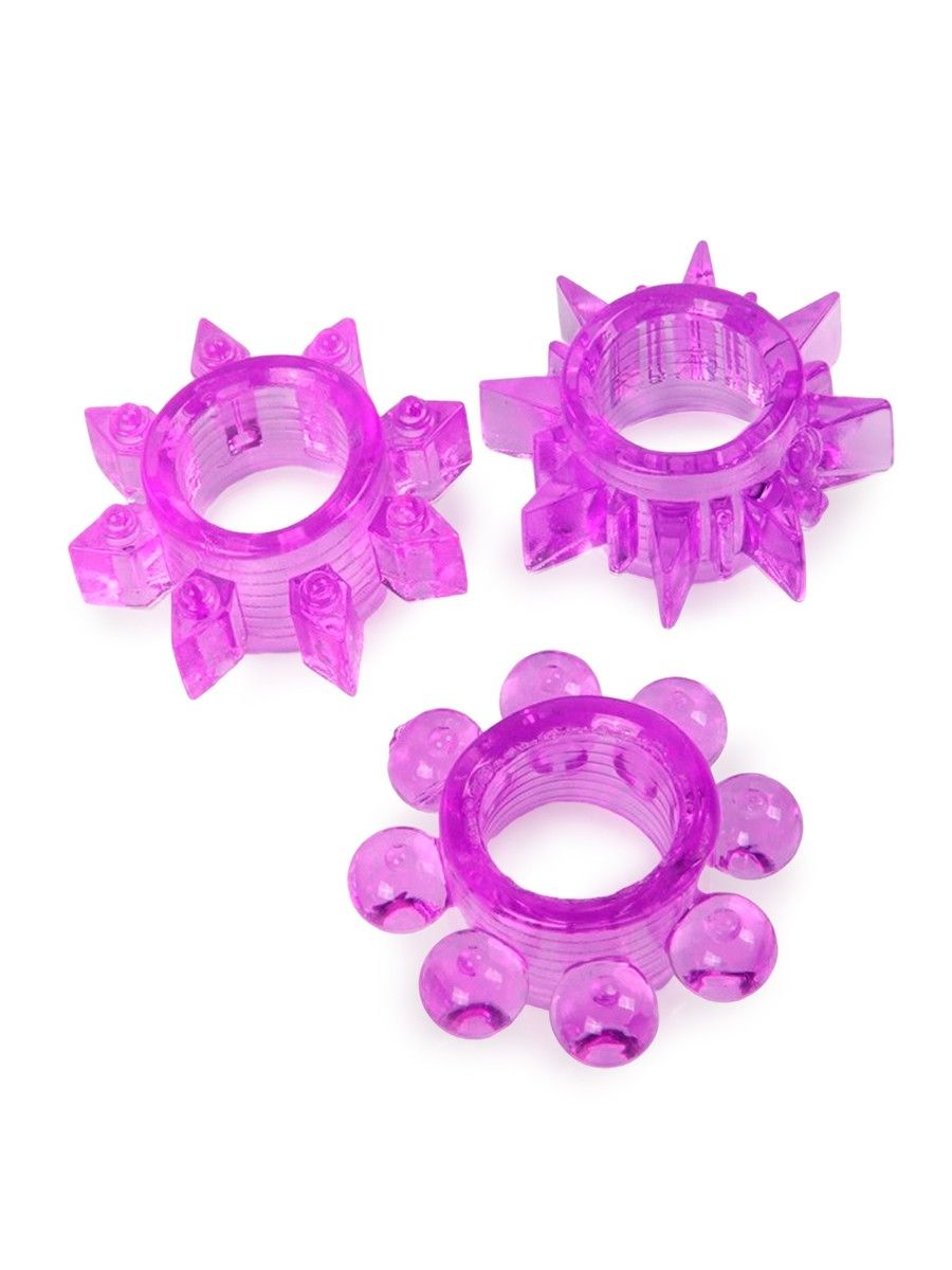 Набор эрекционных колец обеспечит продолжительную эрекцию и поможет продлить интимную близость. Разнообразные «отростки» на внешней поверхности секс-игрушек будут стимулировать интимные зоны партнёрши.Эрекционные кольца изготовлены из эластичного материала, хорошо тянутся и подходят для пенисов разных размеров. Просты в использовании и уходе.Благодаря компактному размеру секс-игрушки можно брать с собой, например, на свидание или в поездку.Совместно с изделиями рекомендуется использовать гель-любрикант «Sex Toys 3 в 1» и очищающий спрей Clear Toy для экспресс-обработки. Внутренний диаметр колец - 1,5 см.