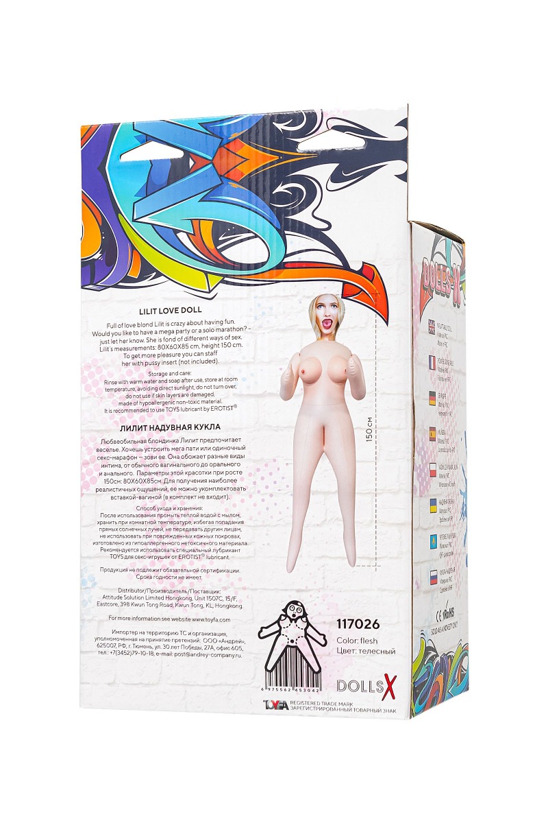 Любвеобильная блондинка Лилит предпочитает веселье. Хочешь устроить мегапати или одиночный секс-марафон - зови ее. Она обожает разные виды интима, от обычного вагинального до орального и анального. Для получения наиболее реалистичных ощущений, ее можно укомплектовать вставкой-вагиной (в комплект не входит).