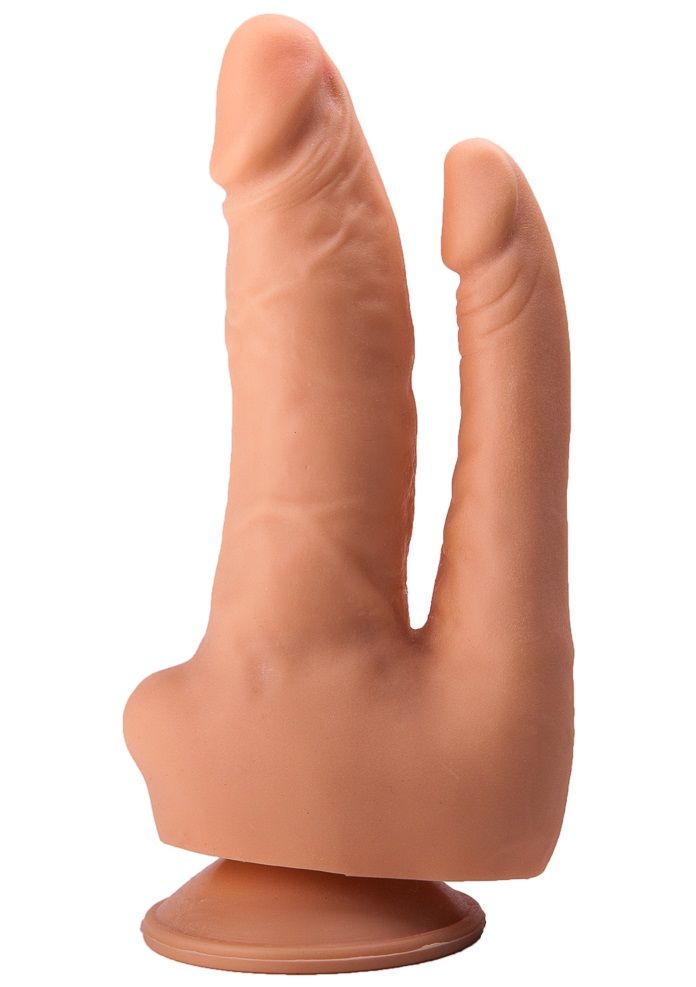 Этот бежевый стимулятор из бархатистого на ощупь материала – ваш ключик к двойному наслаждению. Секс-игрушка с подошвой-присоской представляет собой слившиеся у основания фаллосы – крупный и тонкий. Когда первый, с пышными венками и игриво вздёрнутой головкой, погружается в лоно, второй заполняет собой анус. Одновременная стимуляция стеночек, синхронное скольжение стволов…ох, возбуждение достигает пика за считанные минуты! Диаметр анального отростка – 2,1 см.